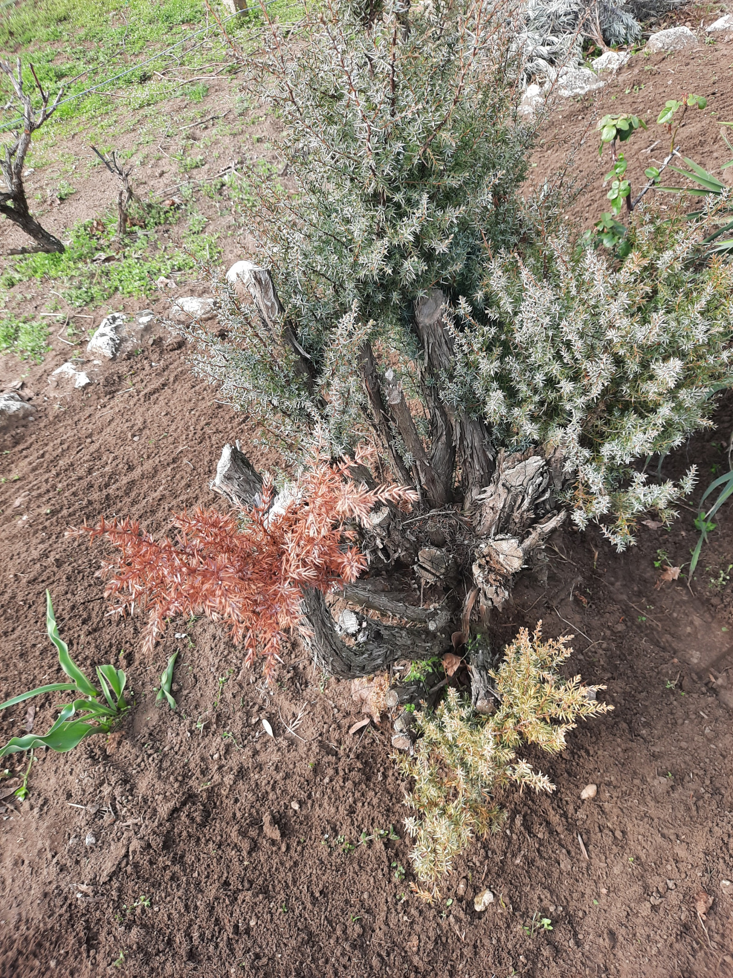 A boróka töveit valamennyire kiszabadítottam és így mikorrizzha gomba készítményt szórtam a gyökérzónába. Ezt követően baktériumtrágyás oldattal alaposan beöntöztem. Május közepén alga lombtrágyával megpermeteztem.